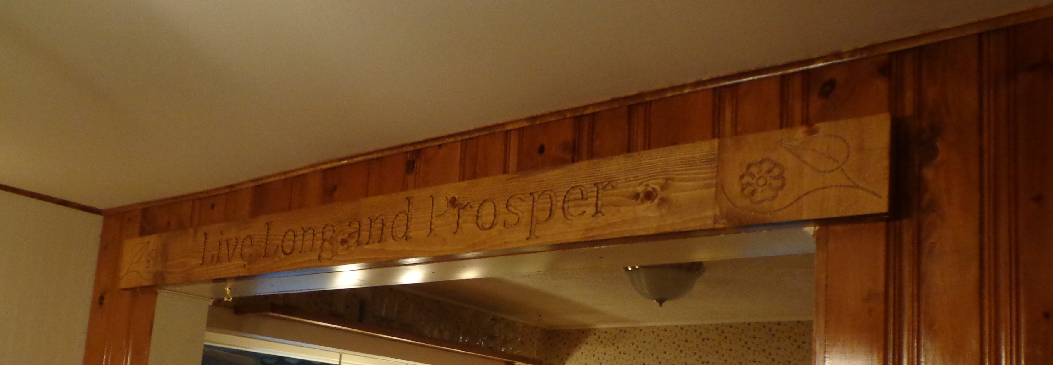 I drew the line at putting the Spock hand at the ends of it. In the top picture you can see that we put a flower on each end. This way if you didn’t realize that this is a nerdy Star Trek reference you would just think that it was a nice saying to have in your house.