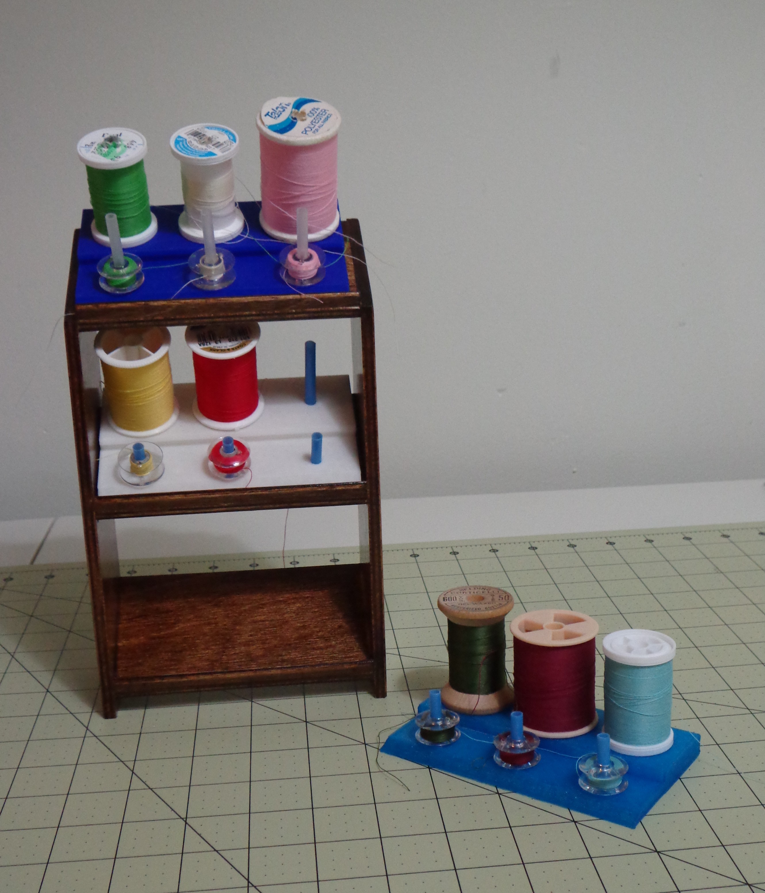 The next prototype that I’ll also have my friend test is a fixed design. This is for the sewers who typically only use a few colors so they don’t have to have very easy access to it. It’s just a nice way to keep the bobbins and spools together.