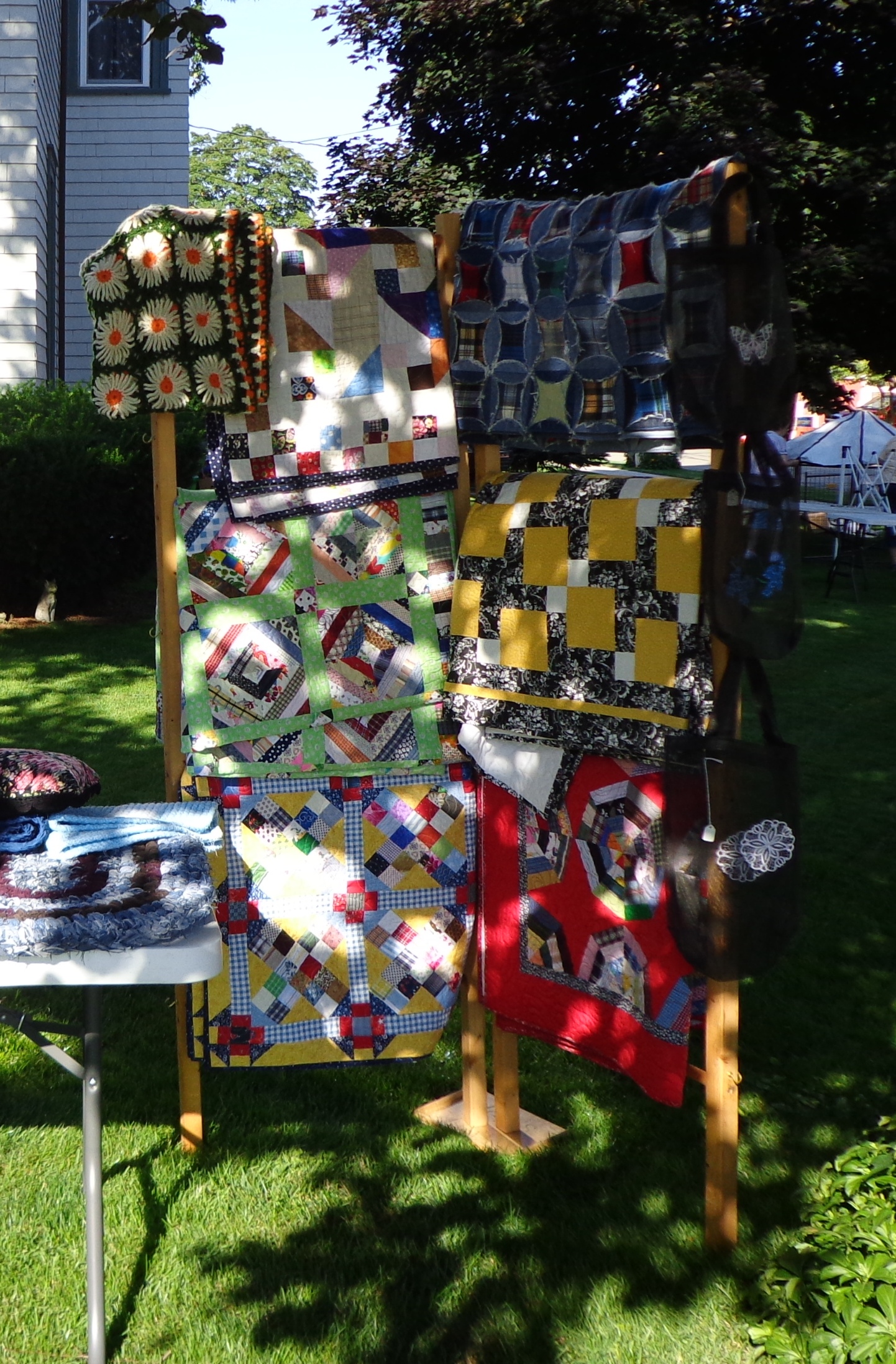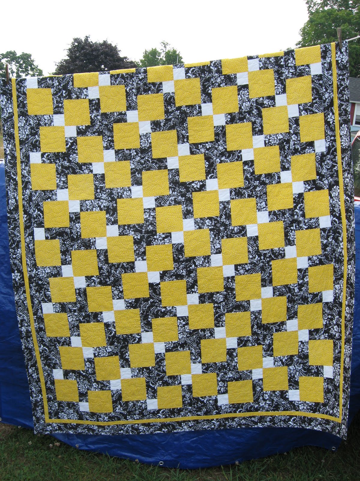 I have this labeled as the Disappearing Nine Patch quilt. This one isn’t to my taste, but when we had it at the craft show this summer people kept referring to it as the Steelers quilt. Yes… apparently it would go very well in a Pittsburgh Steelers themed room. Which, I believe, is where it will end up as I know the person who purchased it.