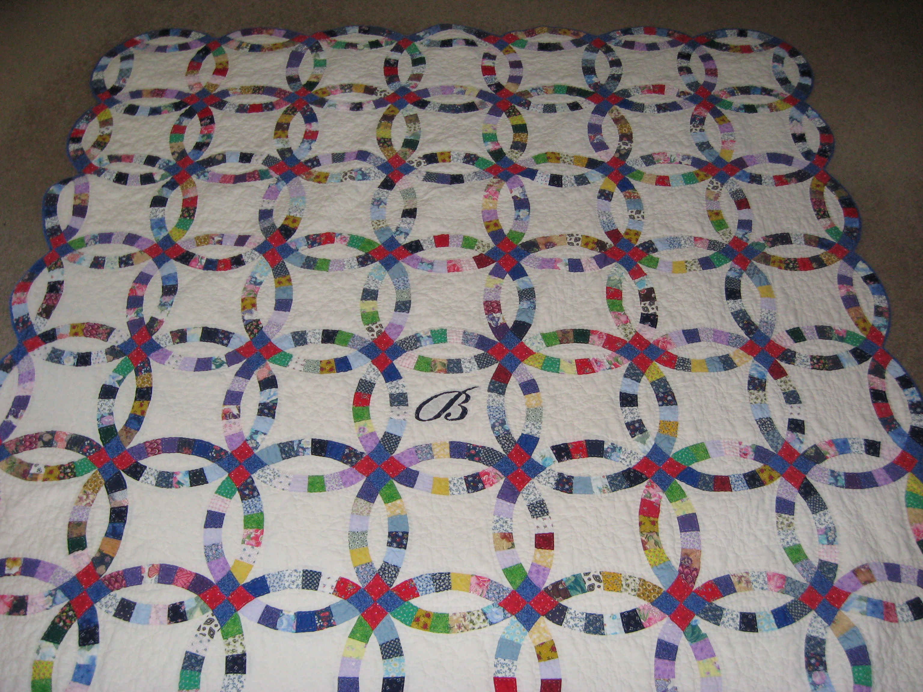 The next quilt that my mom made for me was my favorite one… the double wedding ring quilt that she hand-quilted.