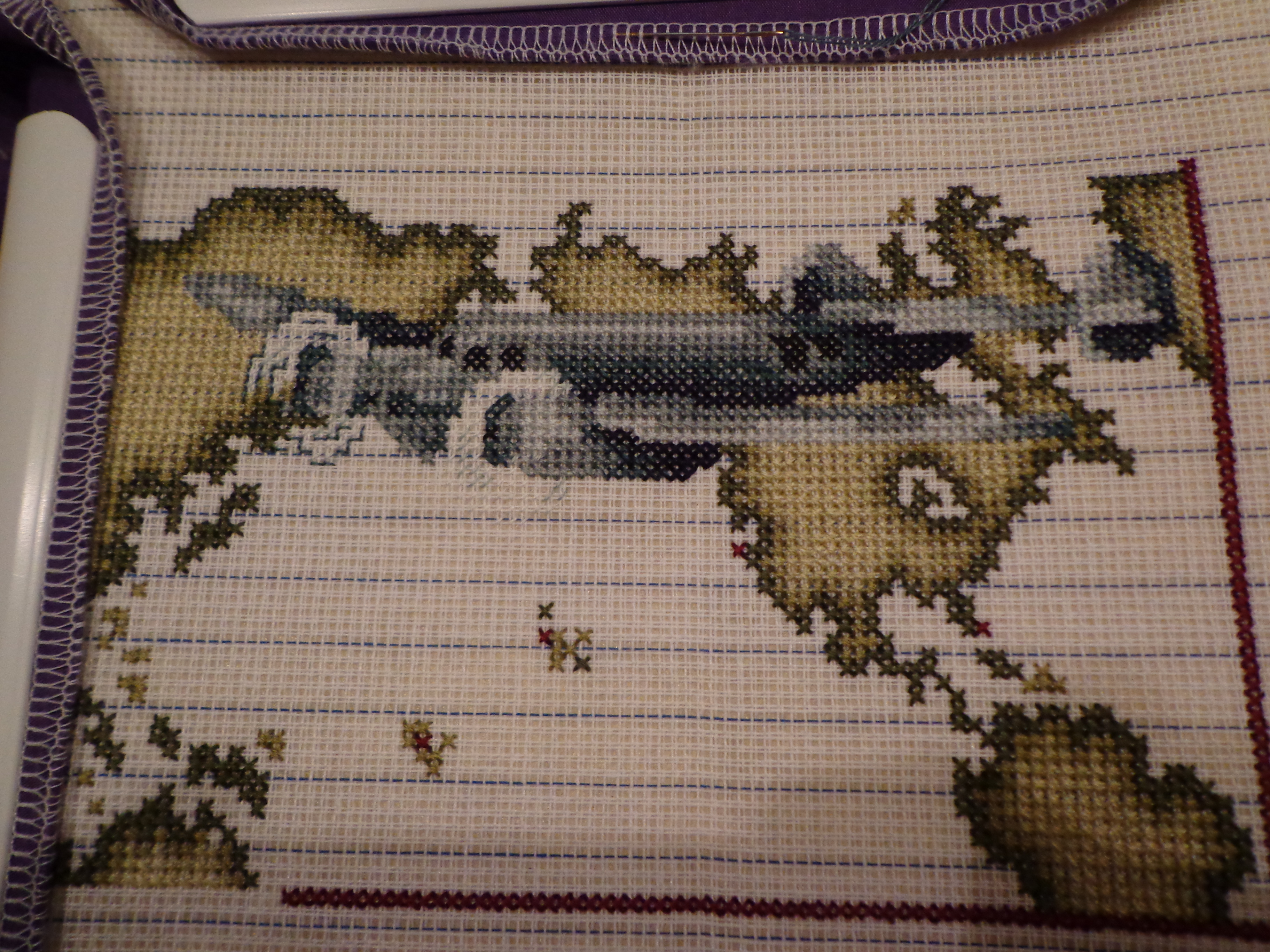 Typically I use my serger to finish off the edges of my cross stitch projects to keep them from unraveling. In this picture you can see that I actually serged the edges of the fabric that I use to protect my cross stitch from the plastic frame of my Q-Snaps. A serger creates an overlocking stitch that really just finishes off edges nicely. Or so that’s what I thought the main use was for a serger.