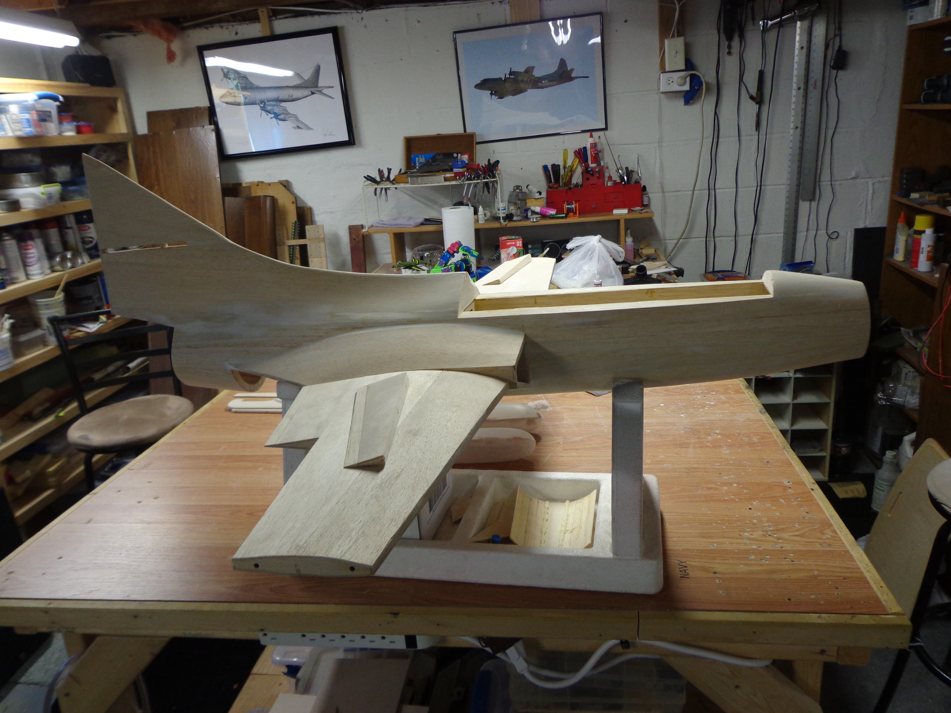 As you can see, Jay has made quite a bit of progress on this lovely little aircraft. I have been told that it won’t actually be glassed, though, until he is glassing the Skyraider. *raises eyebrow* I think that somebody is just reaching for reasons as to why he needs to start building the Skyraider now. More than likely I’ll probably be overruled regarding the Skyraider. I have to admit, though, that he did get the A-4 and Panther done (mostly) before he started on the Skyraider so I will give him some leeway.