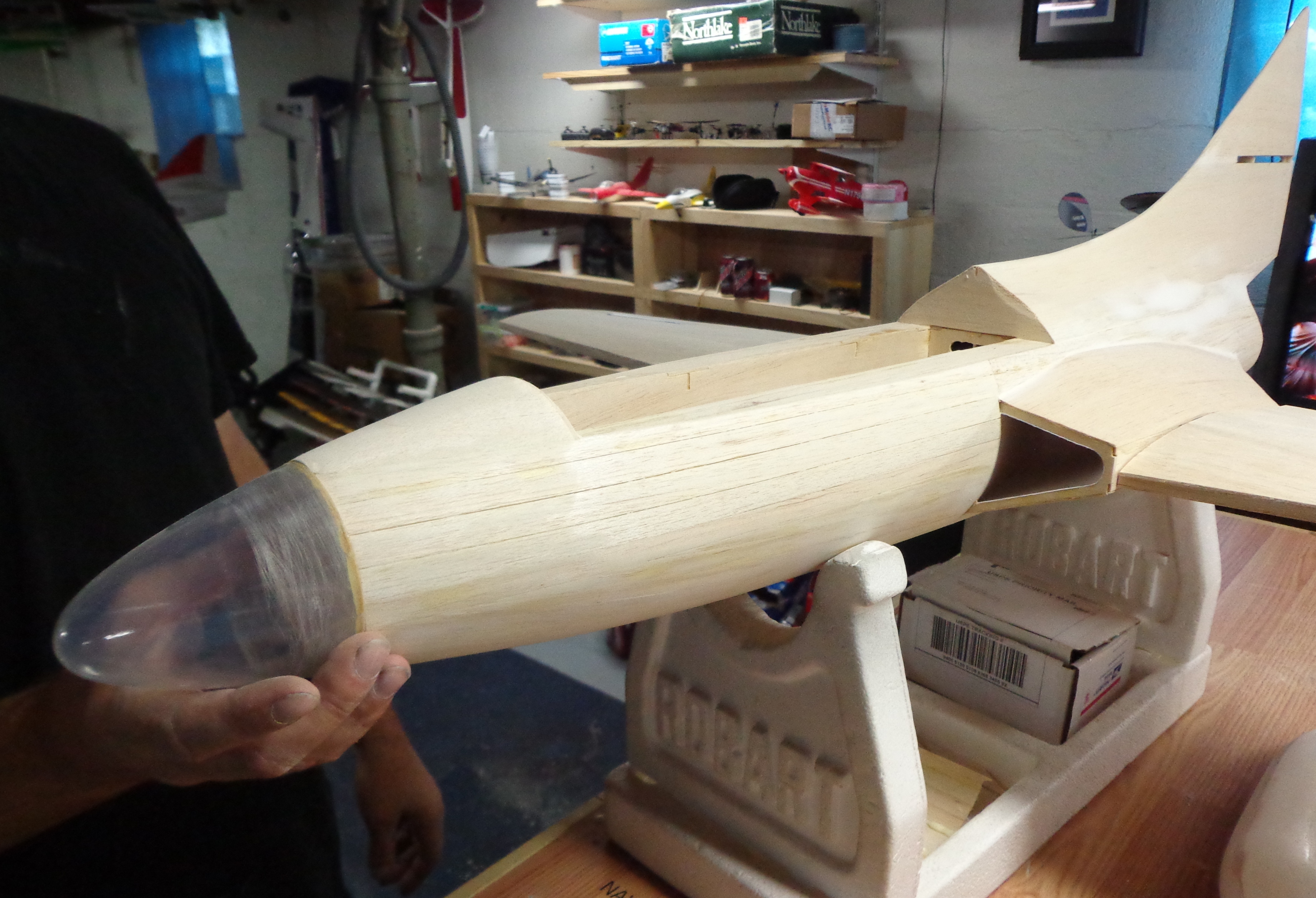 He was going to put retractable gear on this jet, but at some point decided that he would just belly land it instead. Oh, and he’s going to make it a 6S setup instead of an 8S. That means that he’ll be having to bungee launch this jet, too.