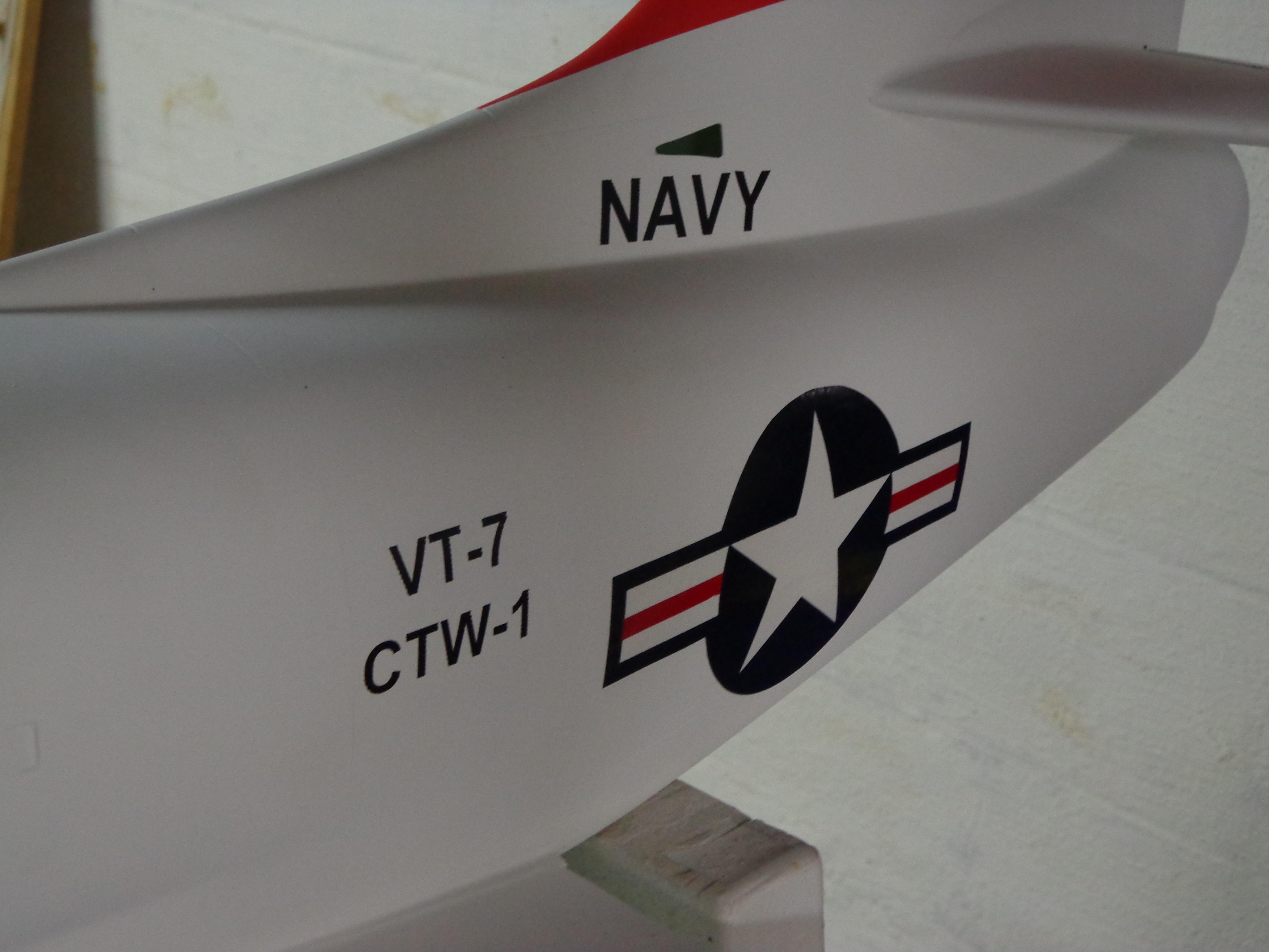 Jay has added some more of the details that make a jet really stand out. These are all stickers, but the numbers, lettering and words he cut using his CNC laser. I think that he did a really good job.