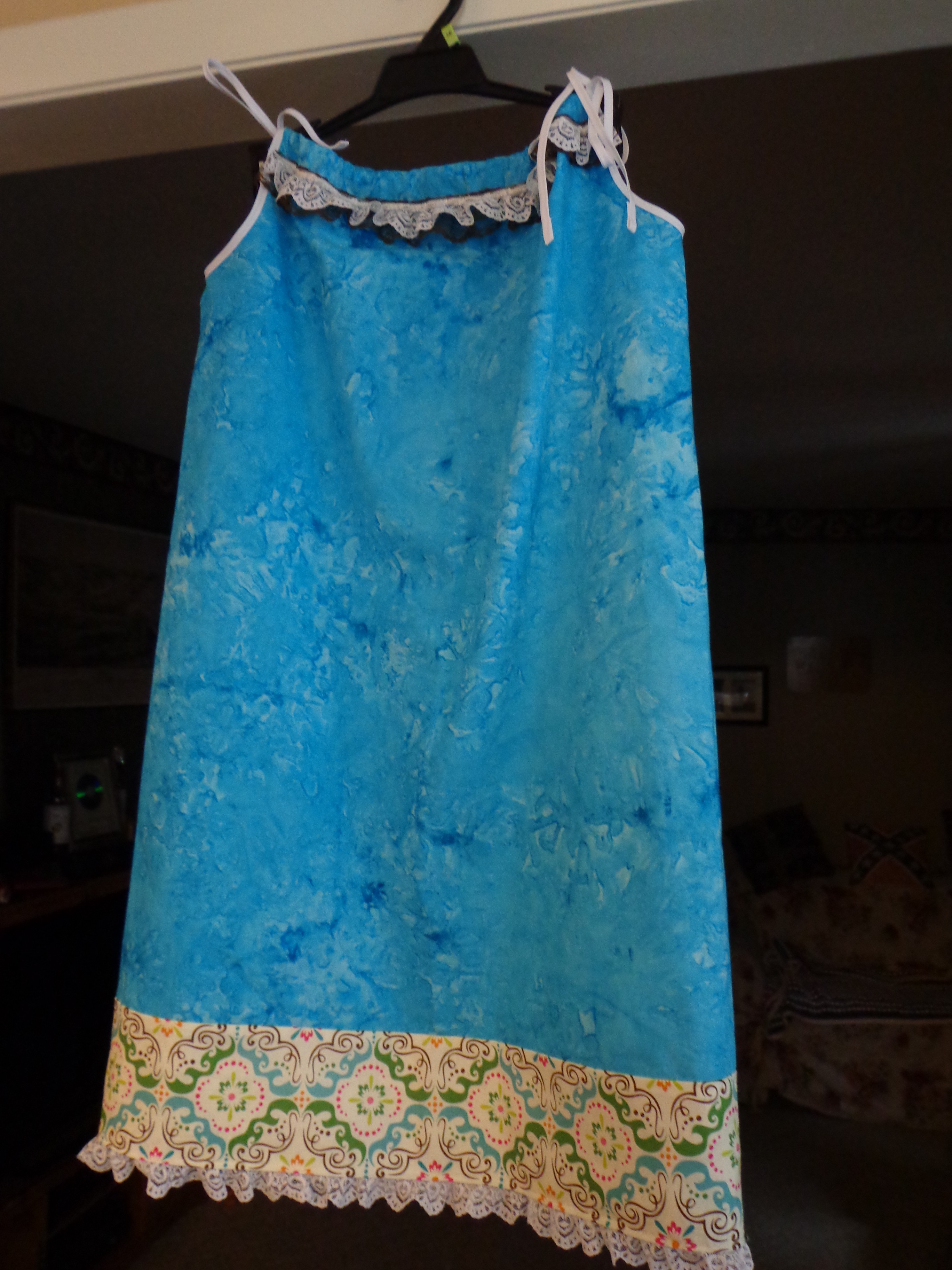 Two weeks ago I was handed a pile of dresses and told that all they need is trim and lace. I’ve done some of this in the past so it wasn’t a big deal. I didn’t realize how many there were, though. I put five together and I still have seven more to go.