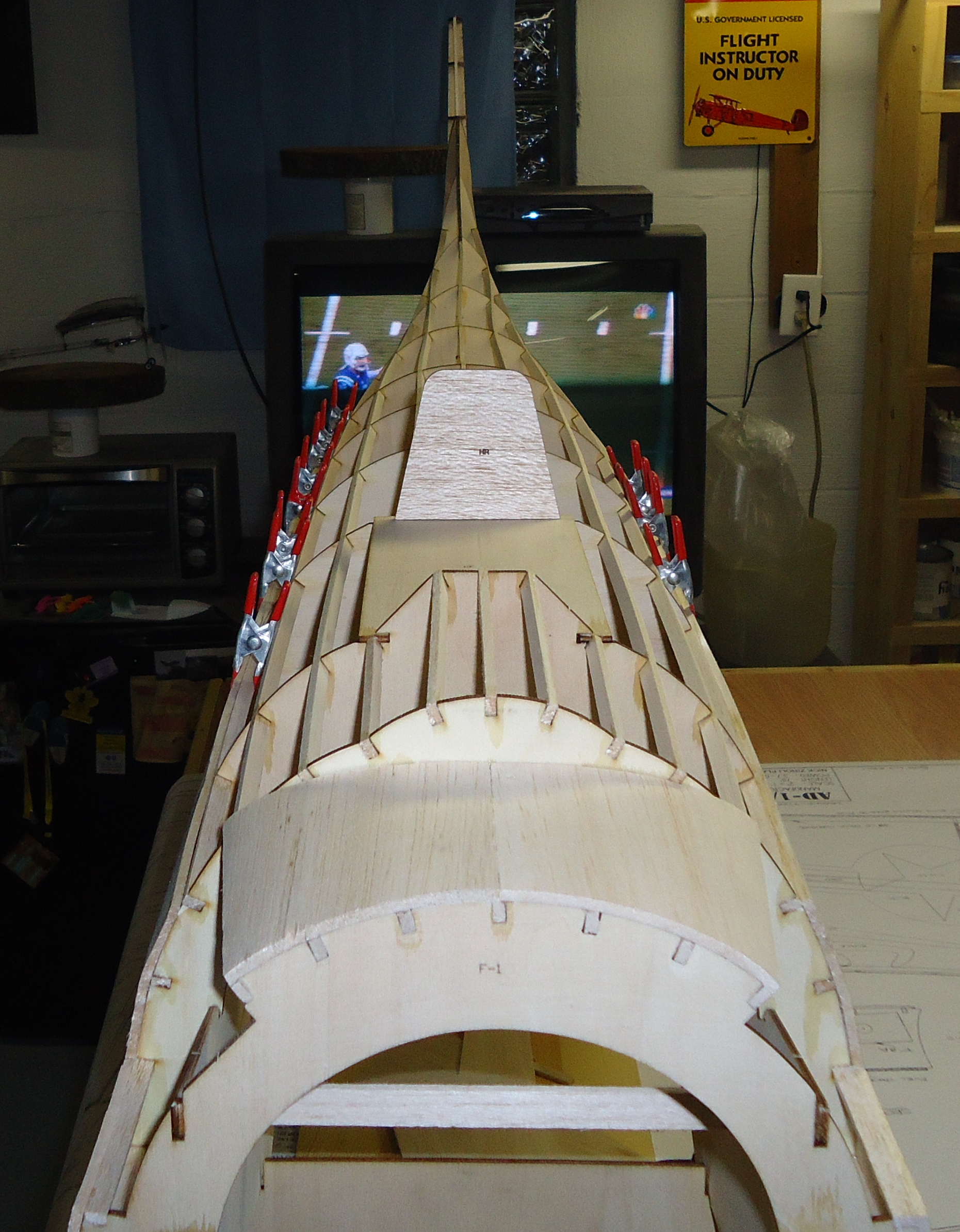 This is how we left the Spad yesterday. We had just finished striping the entire thing. My thought was that we could just leave it like this and get a few birds, but for some reason Jay wanted to keep working on it. Who wouldn’t want a Spad-shaped bird cage??