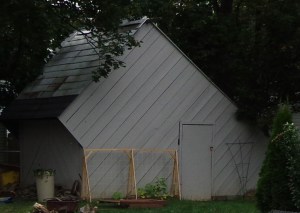 …with the metal roofing laid on it SIDEWAYS so that the ridges caught the water and brought it INTO the shed instead of helping it run down OFF of the shed.