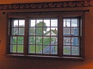 The bad thing about this window is the family room was actually built on in the ’80s so I have no idea where the stupid guy got the window because it wasn’t new in the ’80s. Most of the time we don’t see the window because we keep the drapes closed in front of it.