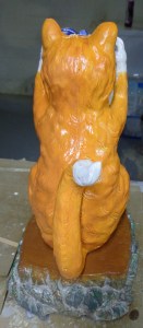 My sister loves orange tiger cats so I begin modeling Tom loosely on that color, but my model wouldn’t stay downstairs with me.