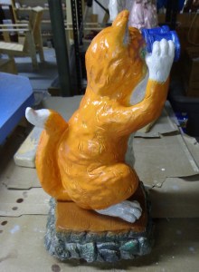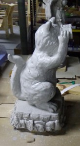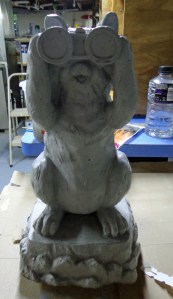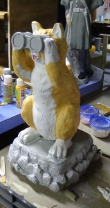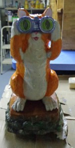 This is when he was all done. I used some of the same techniques used for making realistic-looking rocks on a model train layout on the pile of rocks that Tom is sitting atop. I’m not sure exactly what it is that he’s supposed to be sitting on, so I just painted the top brown to cover up the orange that I had splattered on the bottom.